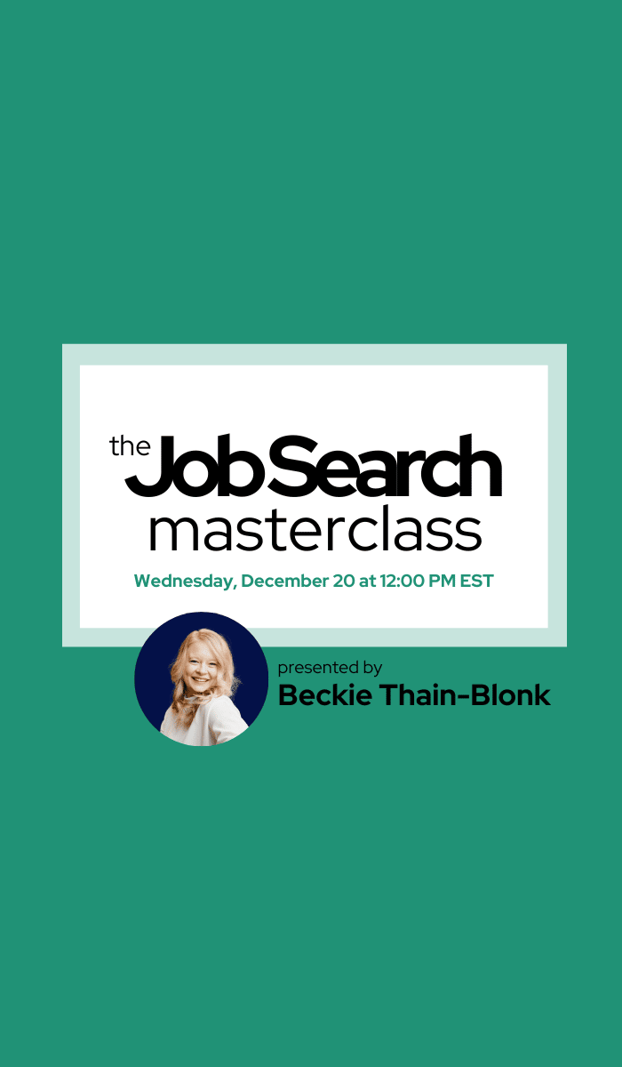 In this LIVE session Career Coach Beckie Thain-Blonk will show you how to plan your job search to position yourself as the top applicant so you can start landing interview, quickly.